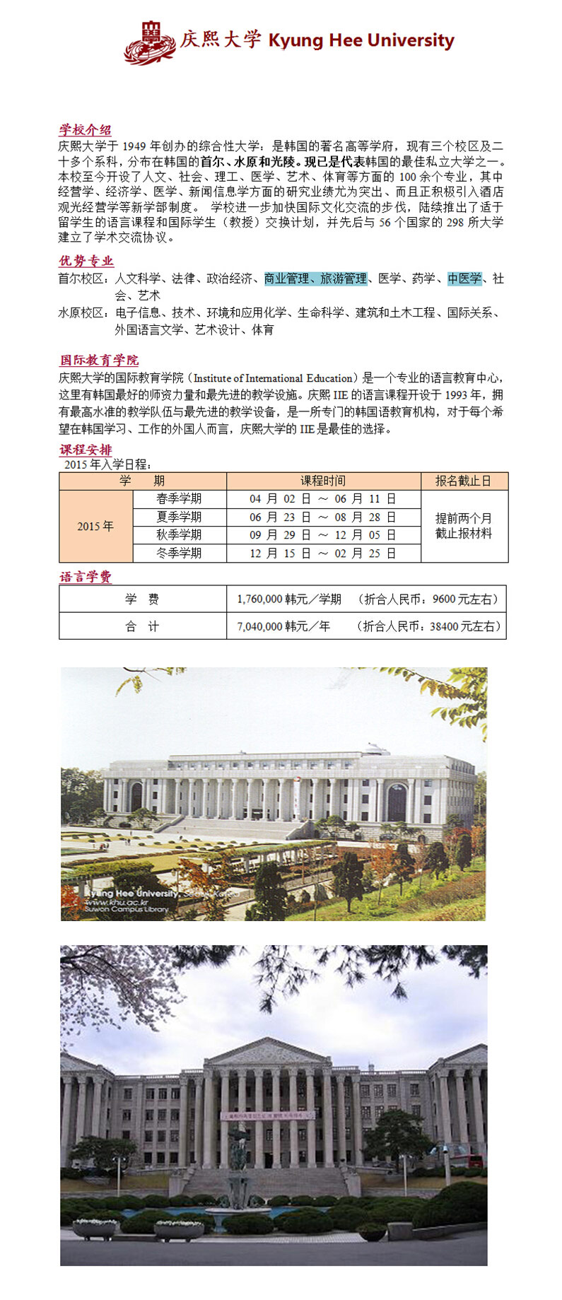 韓國慶熙大學網址http://www.khuchina.com/(中國)